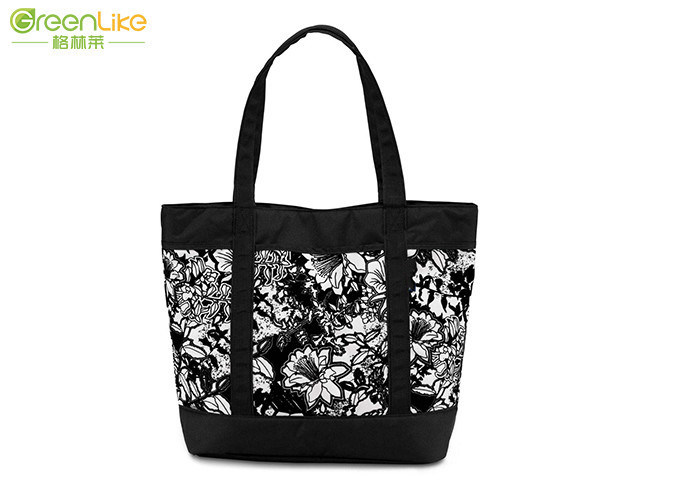 Beach Black 300 Denier Polyester Tote Bags Waterproof Silk Screen Printing