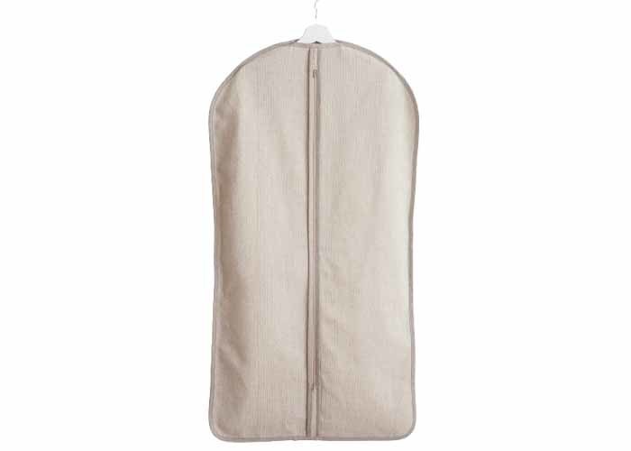 This eco-friendly garment bag is made of linen material. It can also be customized with cotton or canvas material. The size is 60*120cm or can be customized to meet your needs. The color can be customized as well. It features a zipper closure, hanger slot, and handle for easy carrying.